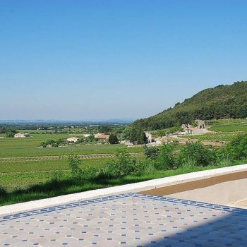 Domain Mas Mazan located on the most beautiful spot of Mazan, a small village in the Vaucluse (Provence) south of Mont Ventoux. Nestling on the brow of a hill, this 3-hectare property commands stunning views all around of vast vineyards and fields. Behind, the rolling forested foothills of Mount Vaucluse hug the lovely medieval villages of St. Didier and Venasque. A little further on lies Pernes les Fontaines and the market town of Carpentras. On a clear day you can even see the famous Palais du Pape in Avignon. At night you can see is glowing softly.